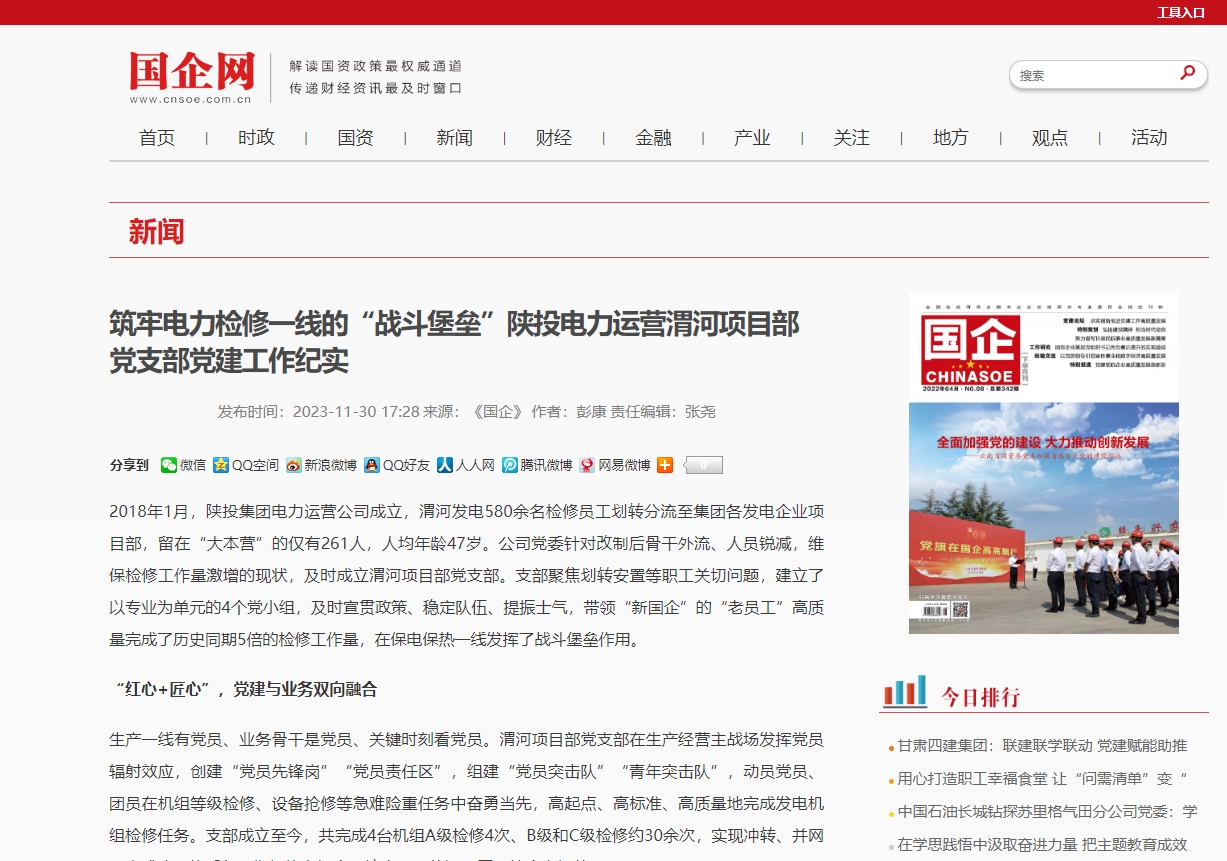 2018年1月,陜投集團電力運營公司成立,渭河發(fā)電580余名檢修員工劃轉分流至集團各發(fā)電企業(yè)項目部,留在“大本營”的僅有261人,人均年齡47歲。公司黨委針對改制后骨干外流、人員銳減,維保檢修工作量激增的現狀,及時成立渭河項目部黨支部。支部聚焦劃轉安置等職工關切問題,建立了以專業(yè)為單元的4個黨小組,及時宣貫政策、穩(wěn)定隊伍、提振士氣,帶領“新國企”的“老員工”高質量完成了歷史同期5倍的檢修工作量,在保電保熱一線發(fā)揮了戰(zhàn)斗堡壘作用。