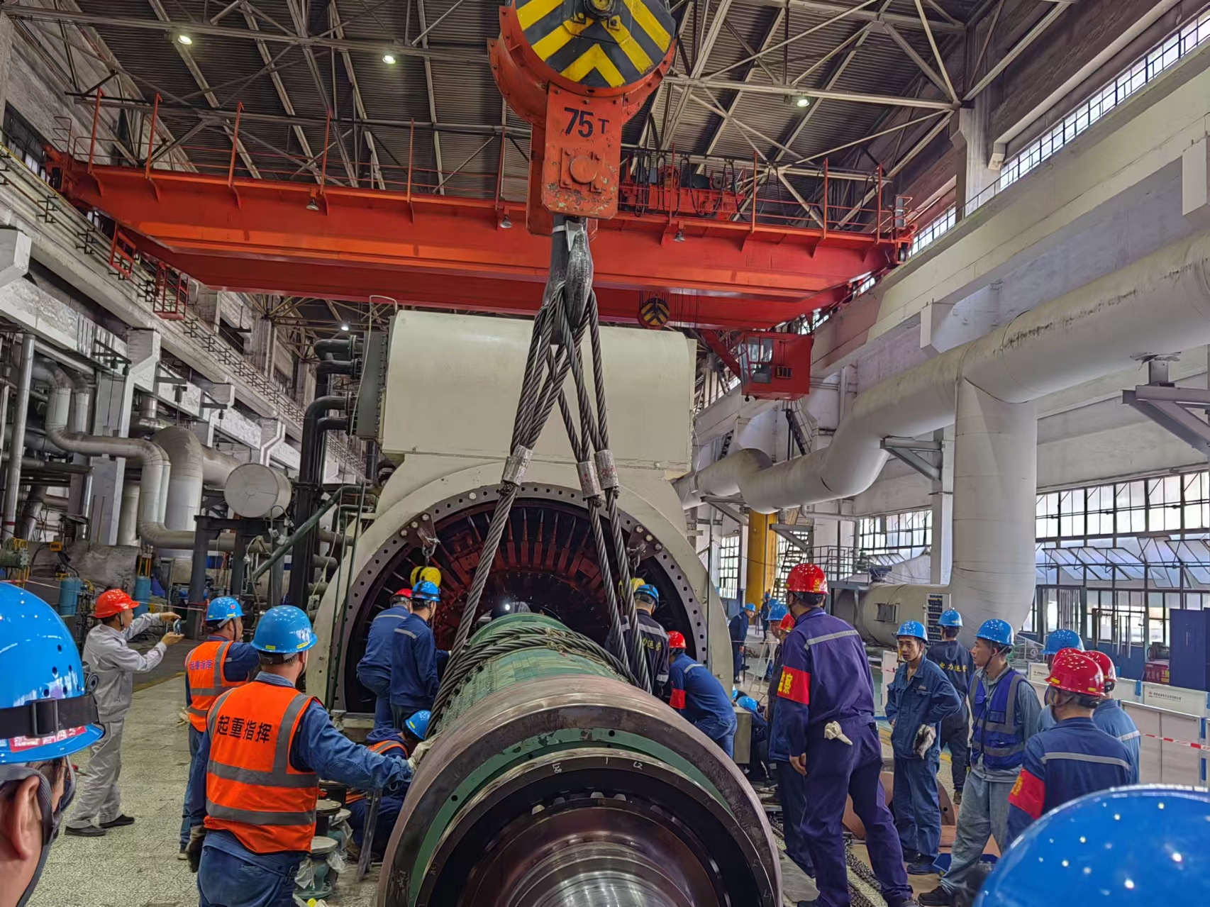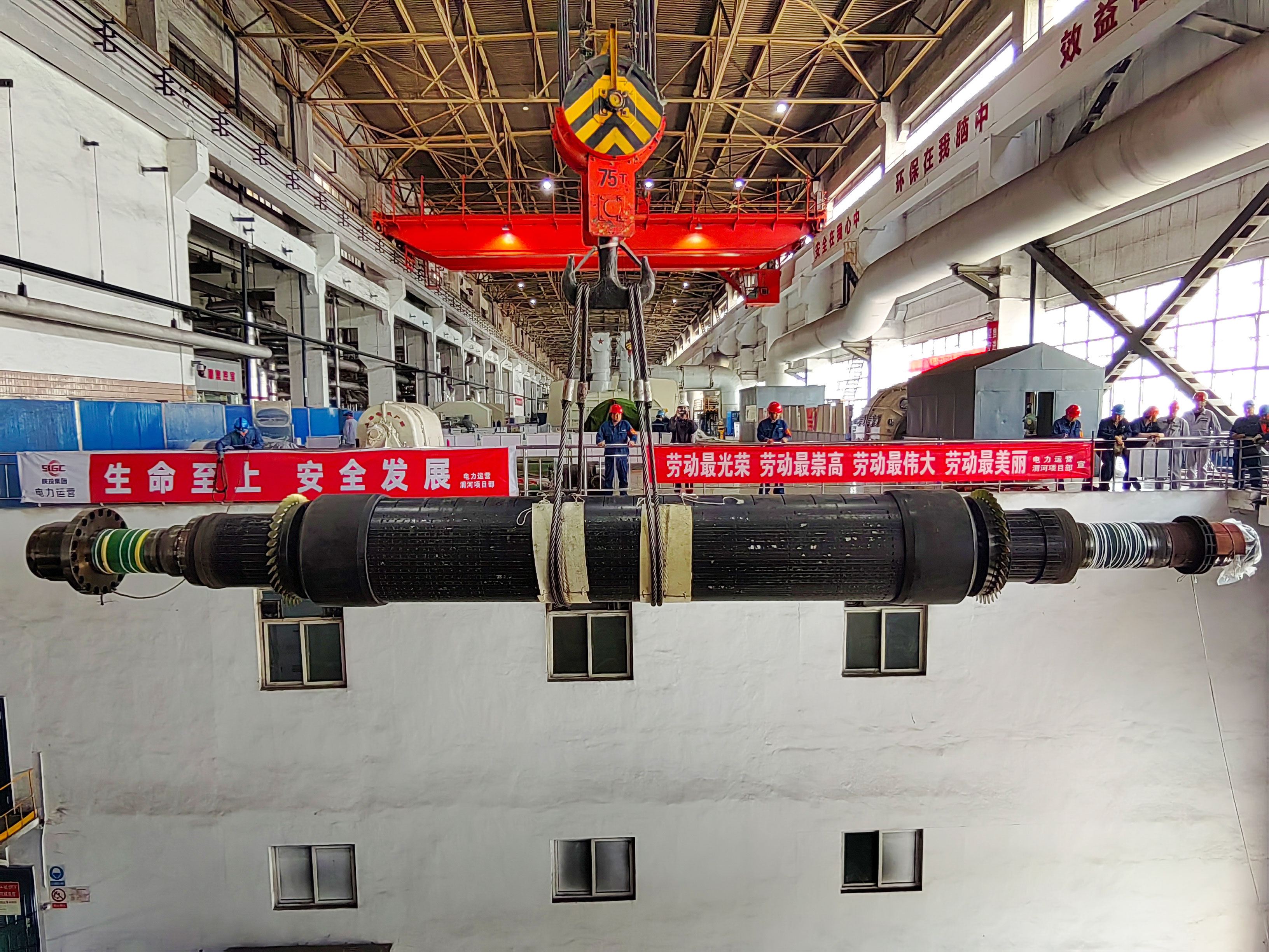 5月9日12:08,隨著起重指揮的一聲哨響,渭河發(fā)電#4機(jī)發(fā)電機(jī)轉(zhuǎn)子順利抽出,標(biāo)志著#4機(jī)C修完成了一個(gè)重要工作節(jié)點(diǎn)。
