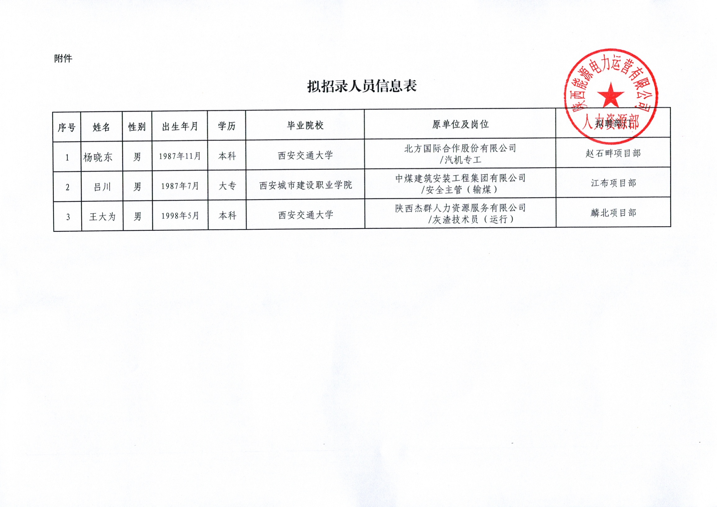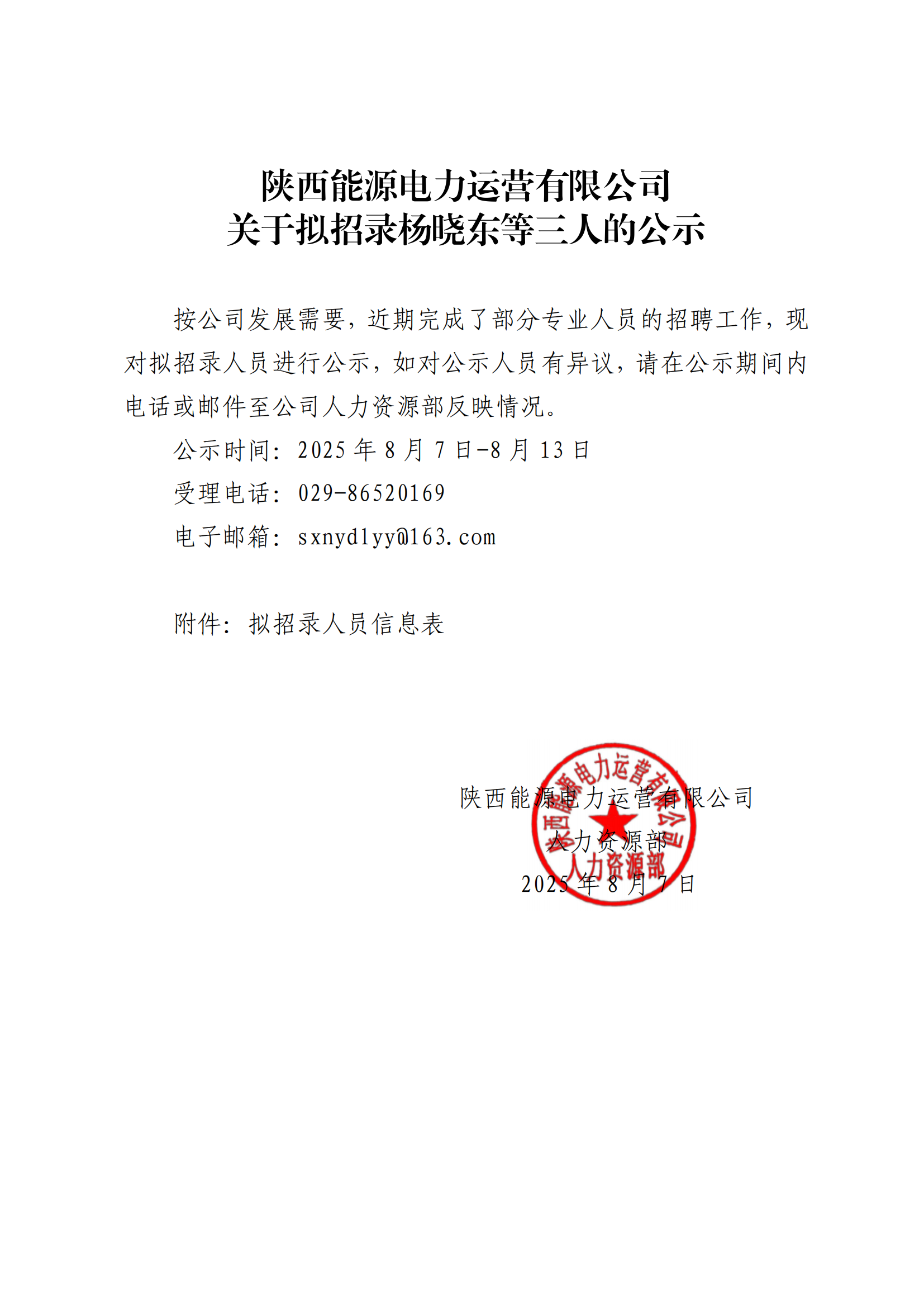 關(guān)于擬招錄楊曉東等三人的公示